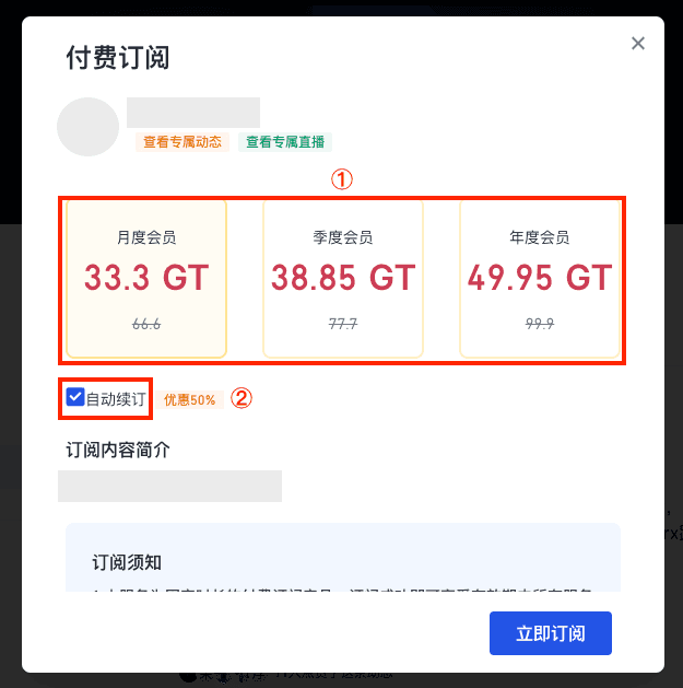 2、通过付费订阅成为该用户的专属会员,并自动关注该用户,所有内容均由该用户提供,该用户具有服务解释权;