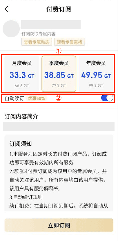 2、通过付费订阅成为该用户的专属会员,并自动关注该用户,所有内容均由该用户提供,该用户具有服务解释权;