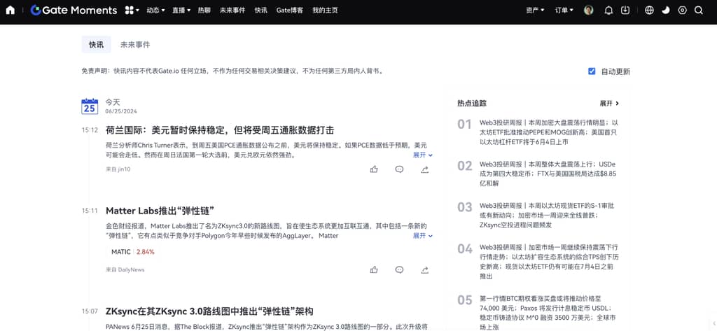 在Web端查看快讯的方法非常简单,首先,用户需要登录Gate Web端,接着在页面上方的导航栏中找到并点击“币圈”选项,然后选择“快讯”即可轻松获取最新信息;此外,如果想要了解更详细的资讯,用户可以进入“资讯”页面,获取更多内容;而在App端,用户只需打开Gate App,点击页面底部的“币圈”选项,再选择“快讯”,便能迅速查看到相关的快讯内容,这样的设计方便用户在不同设备上获取实时信息,确保不会错过任何重要动态,保持对市场的敏锐洞察。