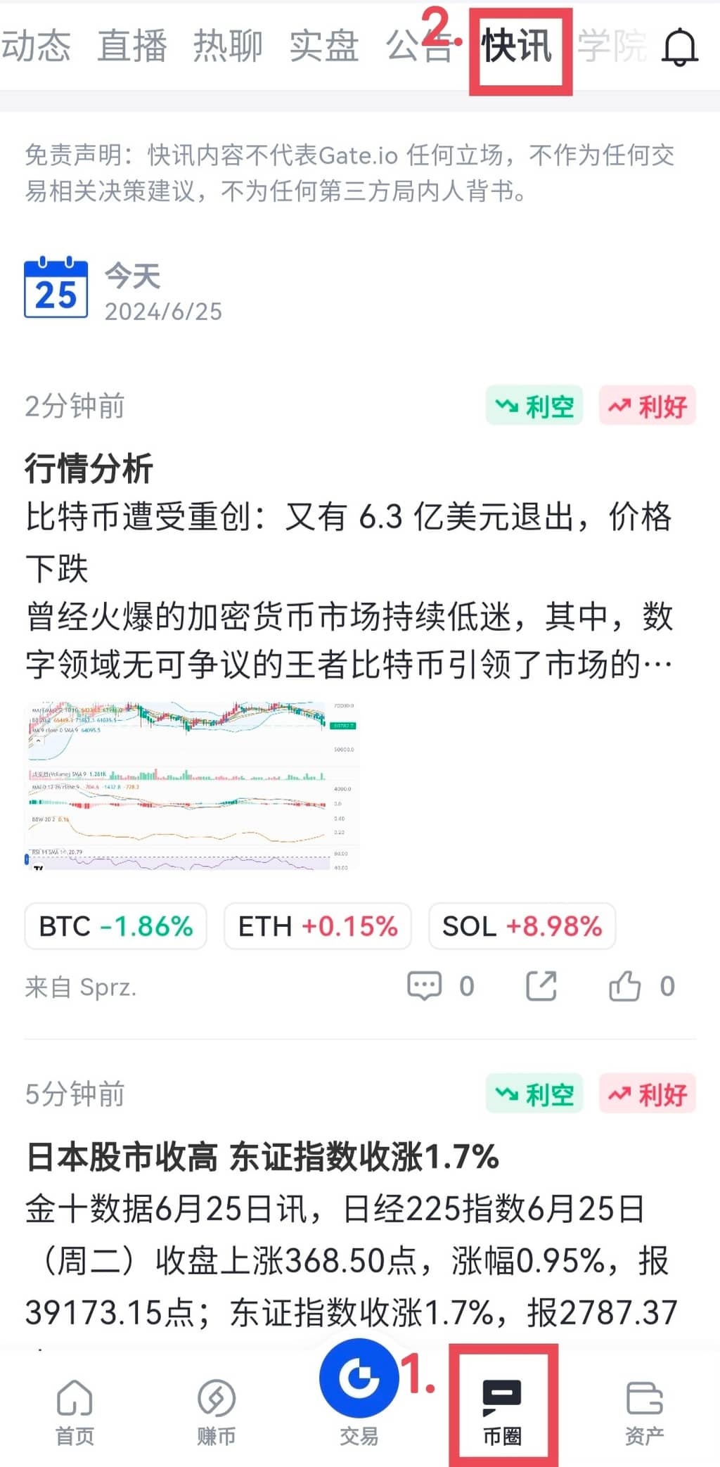 打开Gate App,点击页面底栏“币圈”——“快讯”,即可查看快讯内容。