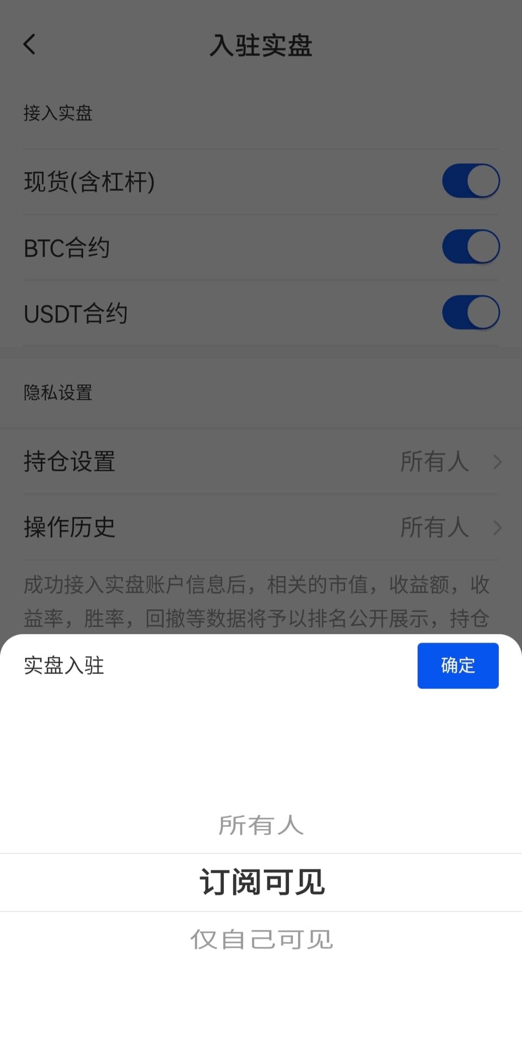②持仓设置或操作历史的“隐私设置”:选择开放对象(所有人/订阅可见/仅自己可见)