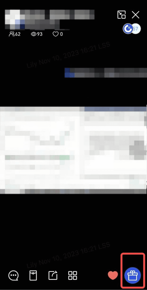 ⑤由左到右分别为:【评论区】、【发送红包】、【禁言管理】、【屏幕镜像功能】、【转发功能】