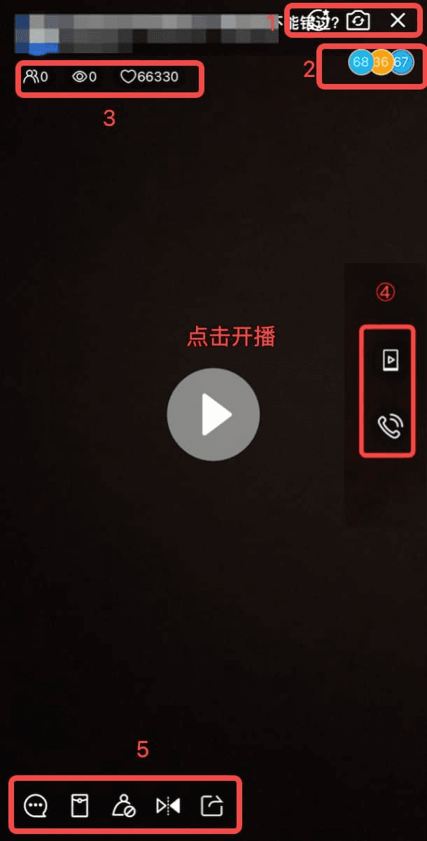③ 由左到右分别为:【当前观看数】、【累计观看数】、【点赞数】