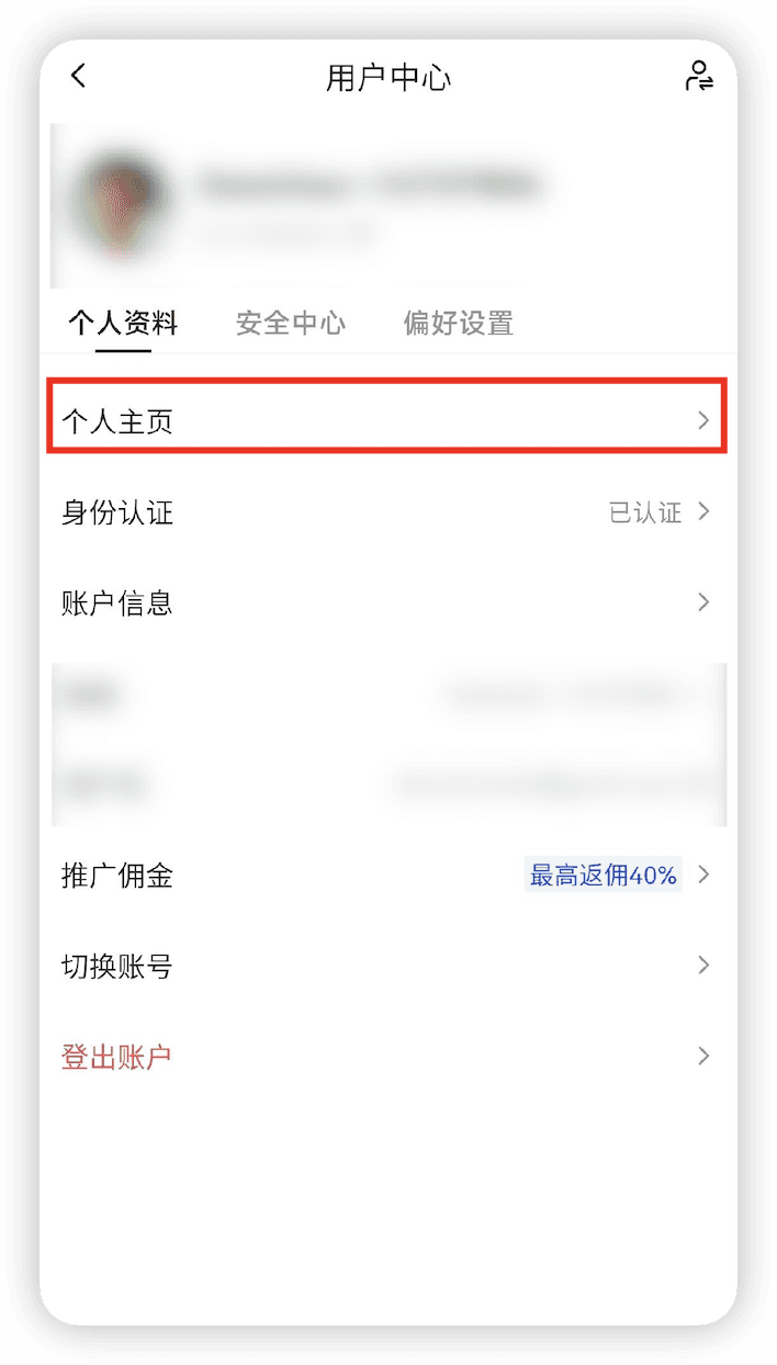 2、进入“用户中心”,点击“个人资料”—“个人主页”。