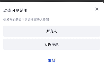 发布动态时,点击左下角选择开放对象,选择“订阅专属”即可