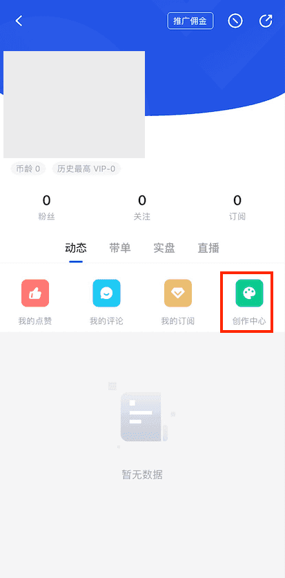 2、进入“动态”页面后,点击页面上方“我的主页”,随后进入“创作中心”界面。