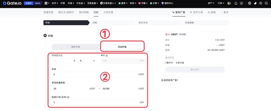 1、法币“浮动价格”功能说明: