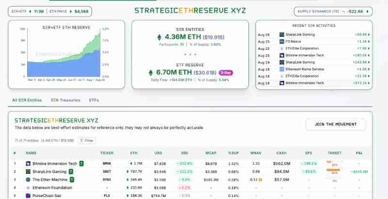 根据链上数据显示,BitMine (BMNR )在过去 12 个小时里接收到 131,736 枚 ETH 。截至 8 月 27 日,BitMine 持有约 170 万枚的 ETH 持仓。