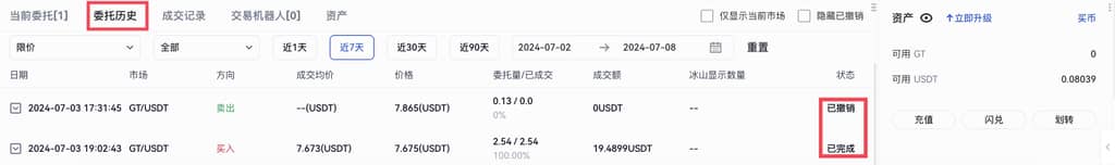 订单成交后该委托会出现在【成交记录】和【委托历史】中。若撤单,则该委托仅可在【委托历史】中查看(图5)。