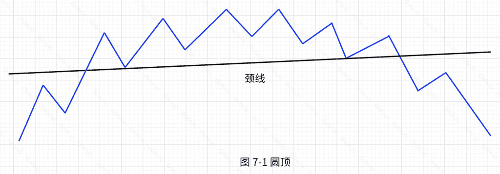 1、和圆底一样,圆顶有时画不出颈线。交易者必须结合其他趋势技术分析手段,及时离场。