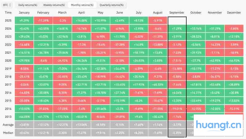 8月比特币以小幅下跌收官,这是自4月以来的首次月度下跌,让不少投资者开始担忧9月的走势。但历史数据告诉我们,9月通常不是比特币的“幸运月”。
