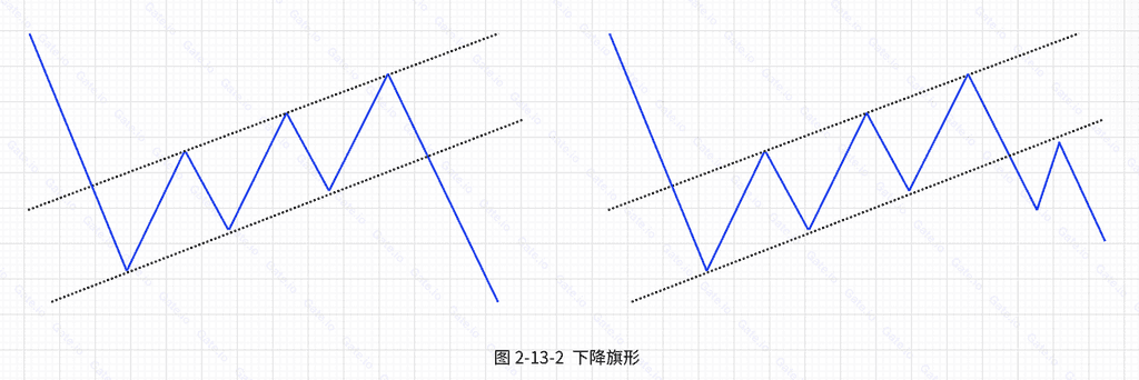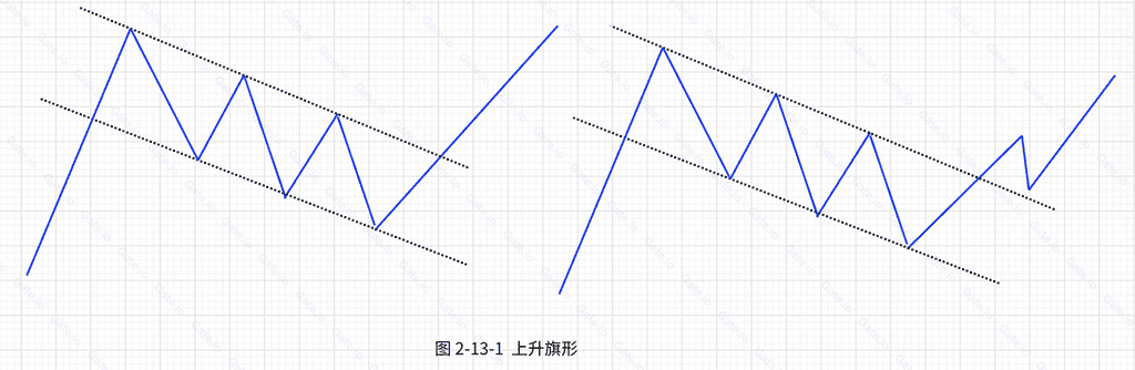 旗形是一种整理形态,经常出现在快速上升或下跌的长期趋势中途,几乎从不出现在牛市顶部和熊市底部。旗形分为上升旗形和下降旗形。