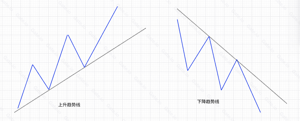 根据趋势线方向的不同,可以分为上升趋势线和下降趋势线。如下图所示:
