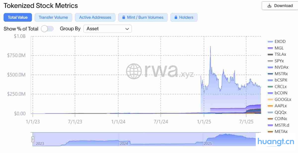 数据显示,代币化股票的总市值已攀升至约3.41亿美元,尽管整体仍处早期阶段,但增长势头强劲。这表明,越来越多的投资者正在意识到代币化股票的潜力,并积极参与到这一新兴市场中。