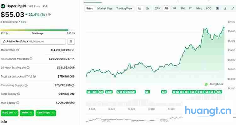 HYPE的强劲走势是投资市场信心的体现。近7日,HYPE以上涨趋势为主,尤其是9月8日之后,随着多家公司的HYPE发行权竞争愈发激烈,HYPE涨势喜人,截至发稿报55.03美元,7日涨幅23.4%。