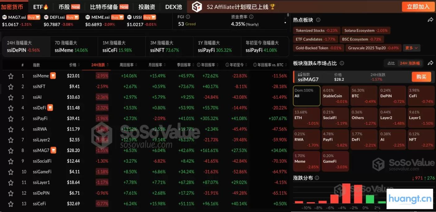 huangt 消息,根据 SoSoValue 数据,加密市场各板块全线回调,其中,Bitcoin(BTC)24 小时下跌 0.49%,一度跌破 11.5 万美元。Ethereum(ETH)下跌 1.01%,在突破 4700 美元后一度跌至 4600 美元下方。