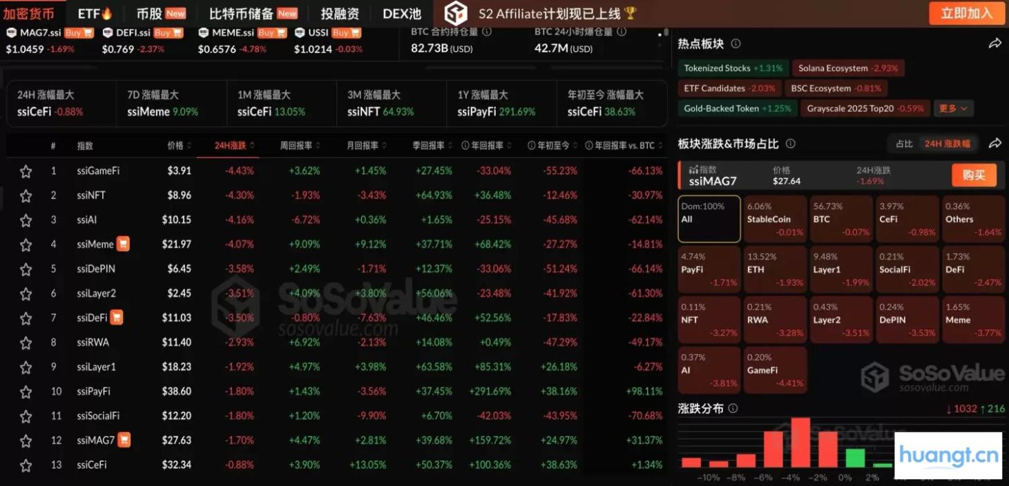 huangt 消息,根据 SoSoValue 数据,加密市场各板块连续两日回调,GameFi 板块 24 小时再度领跌 4.41%,板块内,ImmutableX(IMX)、GALA、Four(FORM)分别下跌 3.64%、5.46%、6.12%。