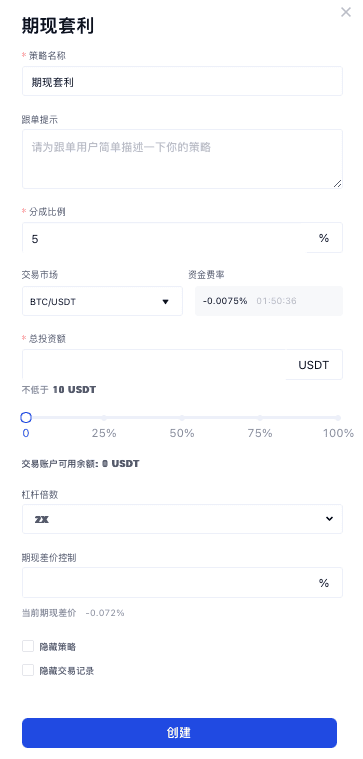 Gate复制交易增加了一个策略—期现套利,允许用户进行期现套利交易,具体如下: