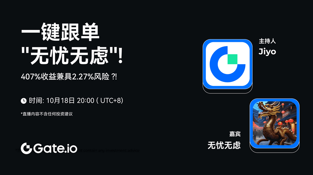 Gate 实盘跟单将于10月18日20:00(UTC+8)举办一场精彩的AMA活动,特别邀请了明星带单员无忧无虑,分享其带单员之路、交易心态的建立及行情热点分析,直播期间还将有红包雨和互动提问环节,观看直播的用户将有机会获得$10 Gate点卡奖励,此外,新用户在直播当天注册并观看满10分钟可获得VIP+1(7天)奖励,邀请人也能享受同样福利,活动中还将推出神秘福利,内容不构成投资建议,嘉宾观点仅供参考,欢迎大家预约直播,不要错过这一难得的机会!