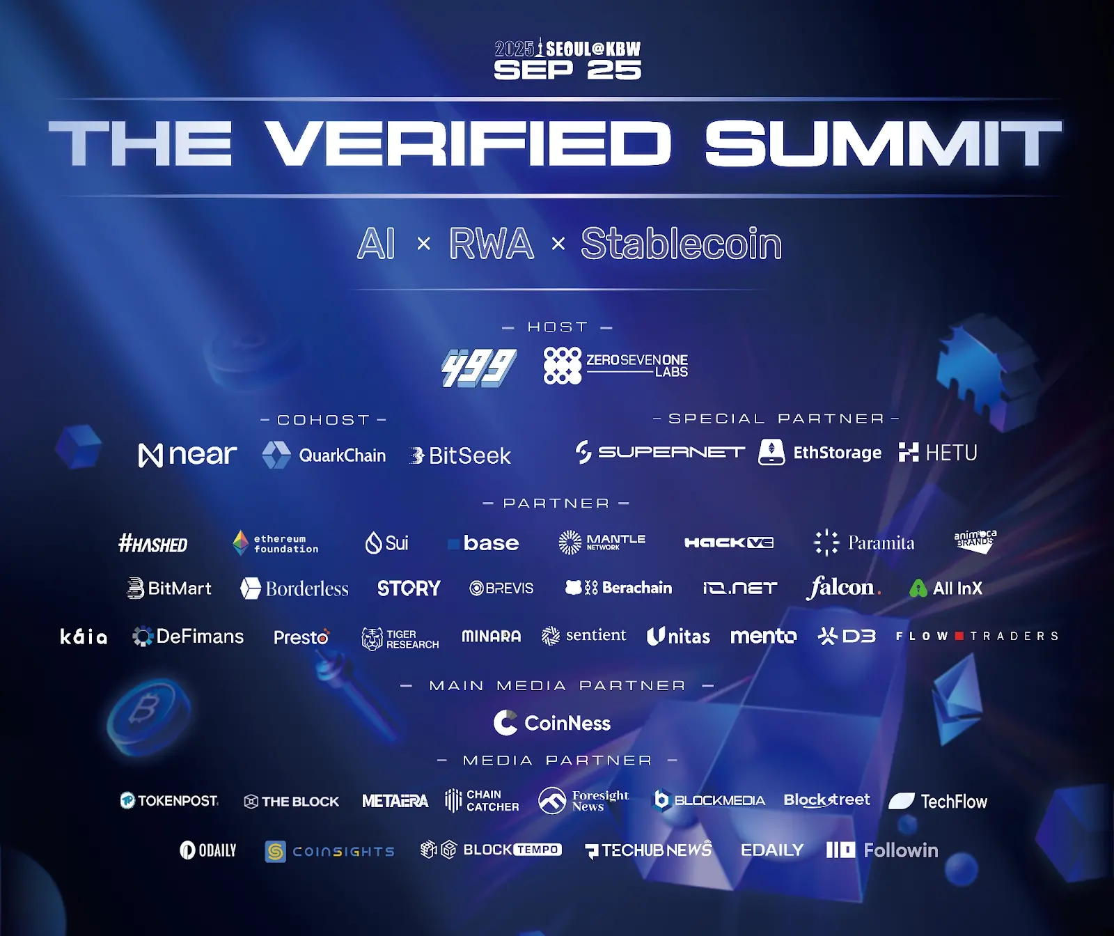 本次峰会作为韩国区块链周(KBW)2025 期间的重磅活动,将深度聚焦人工智能(AI)、真实世界资产(RWA)和稳定币三大核心议题,汇聚全球行业精英,共同展开前瞻性与建设性的探讨。