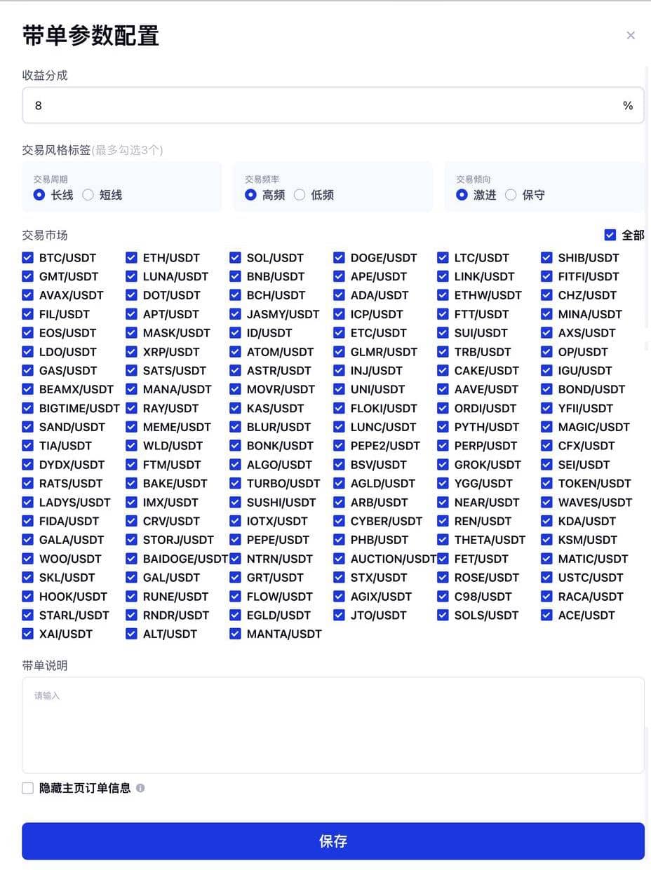 APP端:交易>跟单>点击总资产栏位>我的带单>点击【带单设置】>配置带单参数后即可开启带单交易