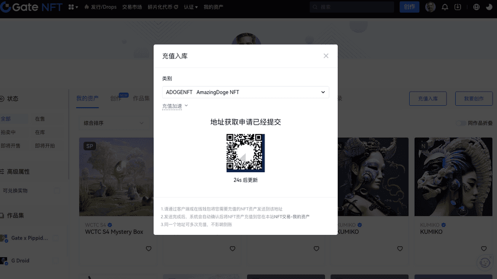 现在只需简单四步,即可将您的 NFT 资产存入 Gate NFT 平台来进行展示和交易。
