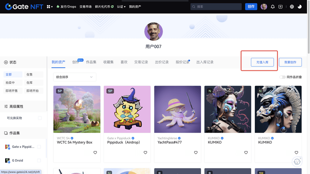 Step 4:充值完成后,系统会自动确认,可在我的资产页面出入库记录中找到您所充值的 NFT 资产。