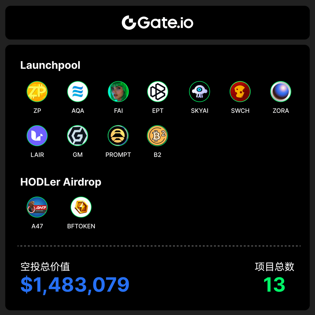 本周期Gate上线了13个新项目,2个HODLer Airdrop免费空投和11个Gate Launchpool项目,总空投价值为 $1,483,079。