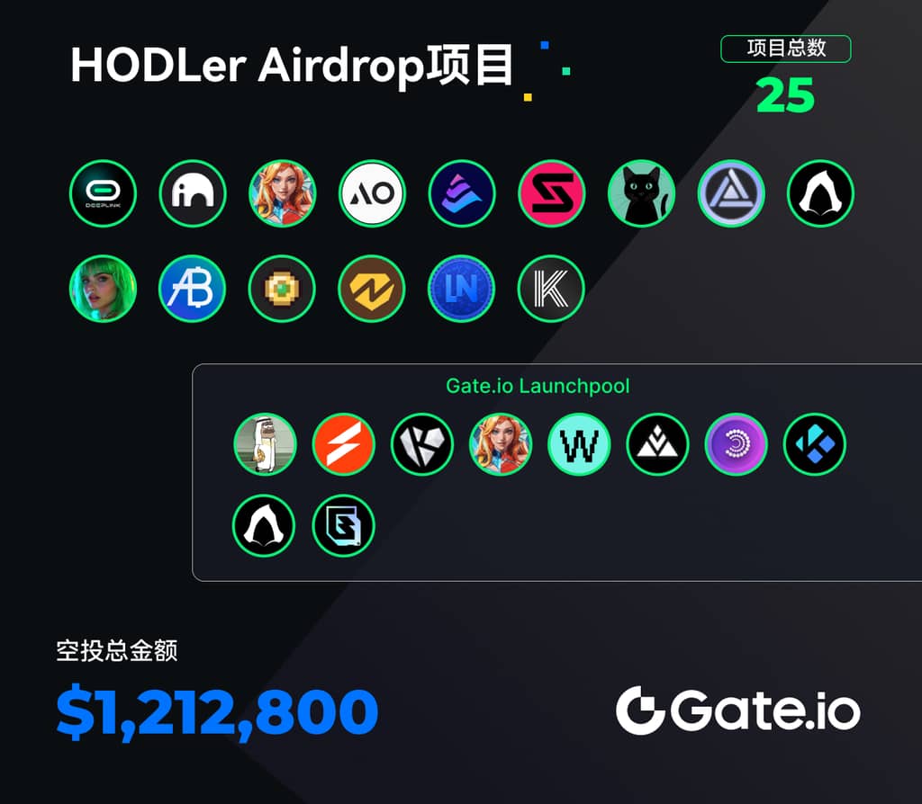 本周期Gate上线了30个新项目,10个Gate Launchpool项目和15个HODLer Airdrop免费空投,HODLer Airdrop总空投价值为121.28万美元。