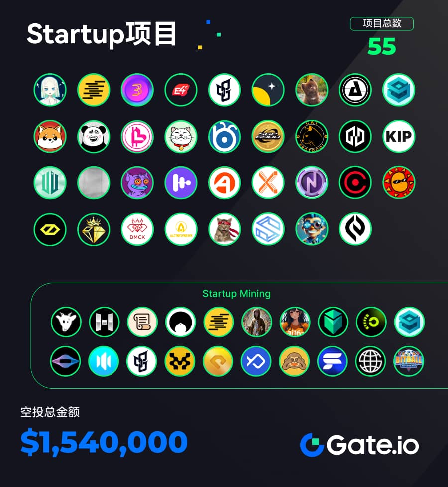 本周期Gate上线了44个新项目和55个Startup项目,总空投价值为154万美元。