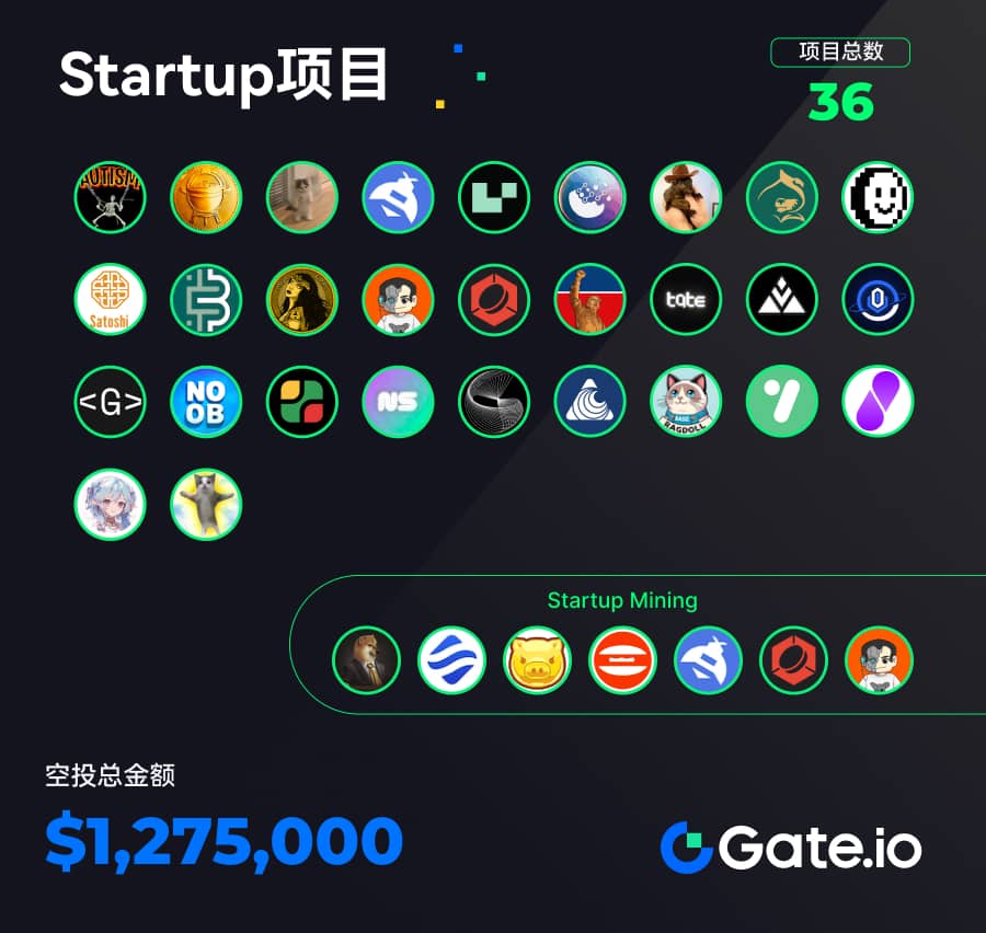 本周期Gate上线了38个新项目和36个Startup项目,总空投价值为127.5万美元。