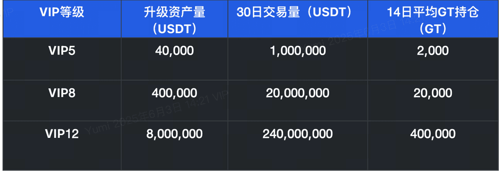 Gate重磅推出VIP专享的「余币宝定期」理财产品,VIP等级越高,年化收益越高,USDT 7天的年化收益最高可达4%,限量额度开放,先到先得,锁定高收益,立即升级VIP,解锁更高年化收益,满足任一门槛即可升级,支持的方式包括VIP升级资产量、30天交易量以及最近14天平均GT持仓量,定期产品的收益规则明确,申购后次日08:00(UTC+8)开始计息,收益将在到期后赎回至账户,提前赎回不支持,参与须完成Gate实名认证,APP用户需升级至7.60版本,产品仅支持对应VIP等级申购,自动复投功能若因额度不足等原因失败,资金将转入余币宝活期,Gate余币宝帮助用户匹配闲置资产与借款需求,确保安全便捷,风险提示用户需注意市场波动,谨慎交易,活动最终解释权归Gate所有,立即行动,注册账户可领最高$10,000迎新奖励,关注官方渠道获取最新福利。