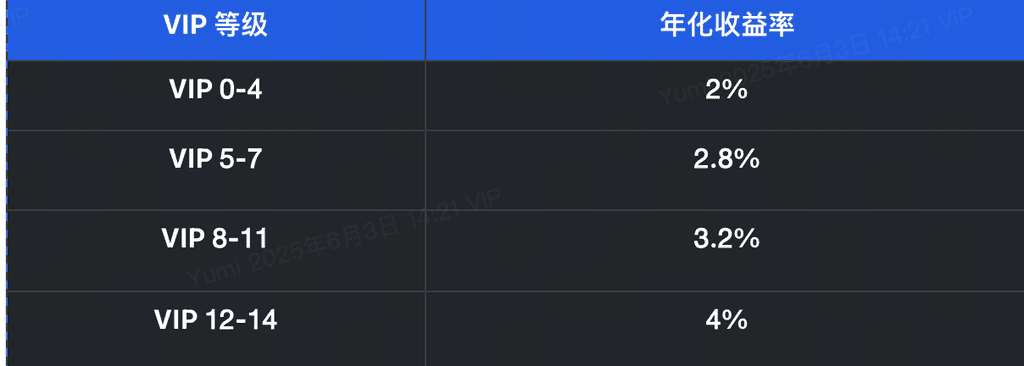 VIP 等级越高,收益越高! 立即升级,解锁更高年化!