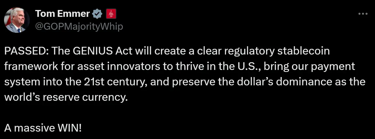 不过,客观来讲,GENIUS 法案固然让稳定币获得了制度承认,但也带来了更多合规要求,为其发展设下了更明确的规则边界。